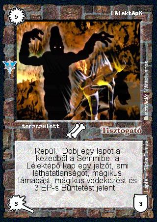 Szöveg: Repül. Dobj egy lapot a kezedből a Semmibe: a Lélektépő kap egy jelzőt, ami láthatatlanságot, mágikus támadást, mágikus védekezést és 3 ÉP-s Büntetést jelent.
