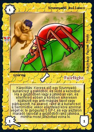 Szöveg: Kárpótlás: Keress elő egy Szunnyadó kullancsot a paklidból, és vedd a kezedbe! Ha a gyűjtődben vagy a játékban van, és ellenfeled ebben a körében sikeresen kijátszott egy anti-mágiás lapot vagy párbajozott, ha akarod, rakd át a kullancsot a Semmidbe: ekkor ellenfeled köre azonnal véget ér, te gyógyulsz 5 ÉP-t, és egy asztalon maradó lapodat a gyűjtődből rakd játékba, mintha most játszottad volna ki.