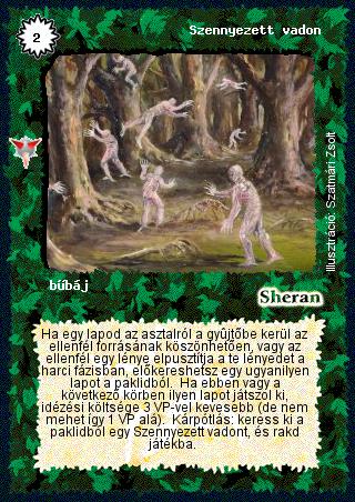 Szöveg: Ha egy lapod az asztalról a gyűjtőbe kerül az ellenfél forrásának köszönhetően, vagy az ellenfél egy lénye elpusztítja a te lényedet a harci fázisban, előkereshetsz egy ugyanilyen lapot a paklidból. Ha ebben vagy a következő körben ilyen lapot játszol ki, idézési költsége 3 VP-vel kevesebb (de nem mehet így 1 VP alá). Kárpótlás: keress ki a paklidból egy Szennyezett vadont, és rakd játékba.