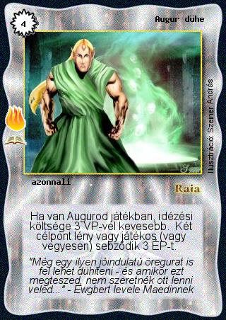 Szöveg: Ha van Augurod játékban, idézési költsége 3 VP-vel kevesebb. Két célpont lény vagy játékos (vagy vegyesen) sebződik 3 ÉP-t.
