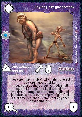 Szöveg: Reakció: Rakj X db -1 ÉP-t jelentő jelzőt egy orglingodra, ekkor megakadályozhatod egy X módosított idézési költségű lap kijátszását. X maximum annyi lehet, ahány orglingod játékban van, és ezt a képességet csak az ellenfél körében, körönként egyszer használhatod.