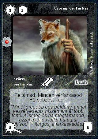 Szinesítő szöveg: "Minél öregebb egy példány, annál veszélyesebb, hiszen annál több fortélyt ismer, és ha megtámadod, azzal a teljes falka haragját kihívod." - Iturgus, a farkasvadász