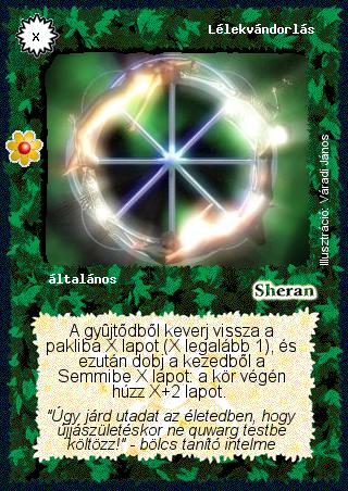 Szöveg: A gyűjtődből keverj vissza a pakliba X lapot (X legalább 1), és ezután dobj a kezedből a Semmibe X lapot: a kör végén húzz X+2 lapot.
