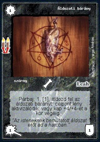 Szöveg: Párbaj: 1. [1], áldozd fel az áldozati bárányt: célpont lény aktivizálódik, vagy kap +4/+4-et a kör végéig.