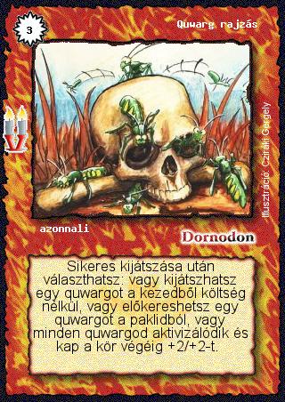 Szöveg: Sikeres kijátszása után választhatsz: vagy kijátszhatsz egy quwargot a kezedből költség nélkül, vagy előkereshetsz egy quwargot a paklidból, vagy minden quwargod aktivizálódik és kap a kör végéig +2/+2-t.