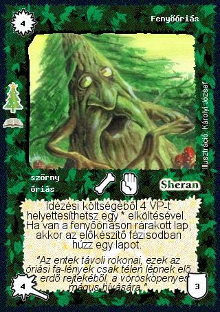 Szöveg: Idézési költségéből 4 VP-t helyettesíthetsz egy * elköltésével. Ha van a fenyőóriáson rárakott lap, akkor az előkészítő fázisodban húzz egy lapot.