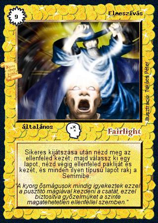 Szöveg: Sikeres kijátszása után nézd meg az ellenfeled kezét, majd válassz ki egy lapot, nézd végig ellenfeled pakliját és kezét, és minden ilyen típusú lapot rakj a Semmibe.