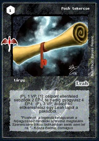 Szöveg: (P), 1 VP, [1]: célpont ellenfeled sebződik 2 ÉP-t, te pedig gyógyulsz 4 ÉP-t. (P), 3 VP, áldozd fel: előkereshetsz egy Leah lapot a paklidból.