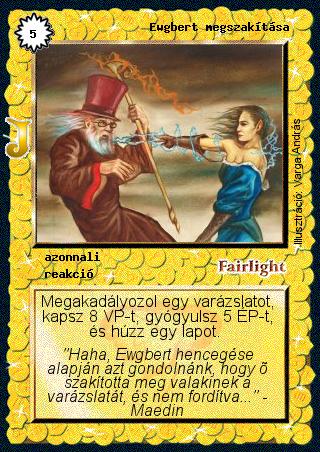 Szöveg: Megakadályozol egy varázslatot, kapsz 8 VP-t, gyógyulsz 5 ÉP-t, és húzz egy lapot.