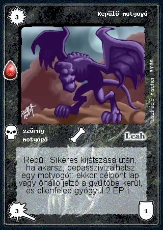 Szöveg: Repül. Sikeres kijátszása után, ha akarsz, bepasszivizálhatsz egy motyogót: ekkor célpont lap vagy önálló jelző a gyűjtőbe kerül, és ellenfeled gyógyul 2 ÉP-t.