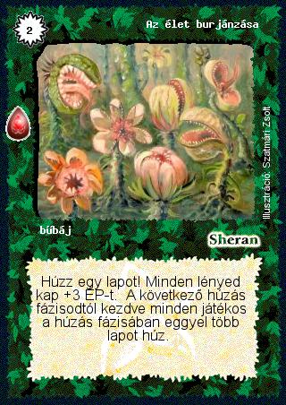 Szöveg: Húzz egy lapot! Minden lényed kap +3 ÉP-t. A következő húzás fázisodtól kezdve minden játékos a húzás fázisában eggyel több lapot húz.