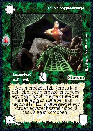 Szöveg: 3-as mérgezés. [2]: Keress ki a paklidból egy mérgező lényt, vagy egy olyan lapot, melynek nevében a 'méreg' szó szerepel, akár ragozva is. Ezt a képességet egy körben egyszer használhatod, s csak a saját körödben.