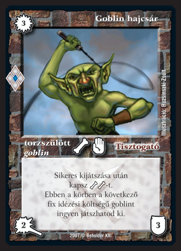 Szöveg: Sikeres kijátszása után kapsz _* _*-t. Ebben a körben a következő fix idézési költségű goblint ingyen játszhatod ki.