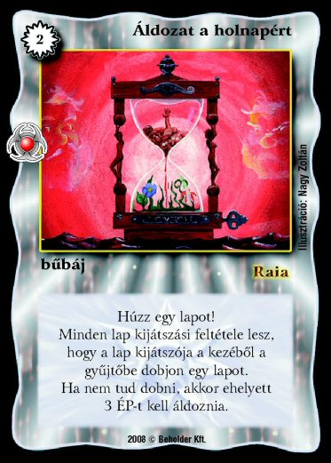 Szöveg: Húzz egy lapot! Minden lap kijátszási feltétele lesz, hogy a lap kijátszója a kezéből a gyűjtőbe dobjon egy lapot. Ha nem tud dobni, akkor ehelyett 3 ÉP-t kell áldoznia.