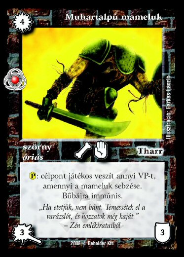 Szöveg: (P): célpont játékos veszít annyi VP-t, amennyi a mameluk sebzése. Bűbájra immúnis.