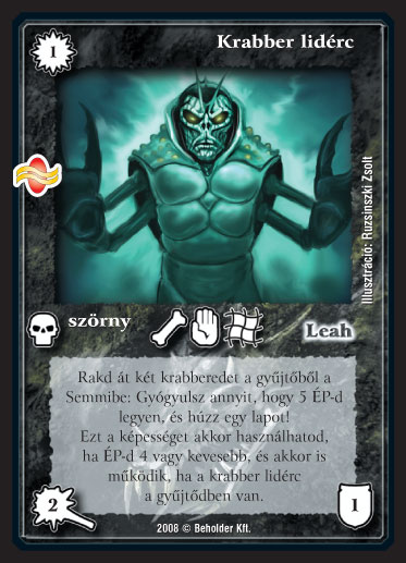 Szöveg: Rakd át két krabberedet a gy?jt?b?l a Semmibe: Gyógyulsz annyit, hogy 5 ÉP-d legyen, és húzz egy lapot! Ezt a képességet akkor használhatod, ha ÉP-d 4 vagy kevesebb, és akkor is m?ködik, ha a krabber lidérc a gy?jt?dben van.