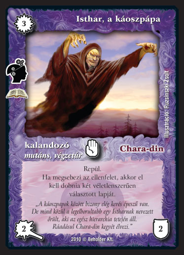 Szinesítő szöveg: "A káoszpapok között bizony elég kevés épesz? van. De mind közül a legelborultabb egy Istharnak nevezett ?rült, aki az egész hierarchia tetején áll. Ráadásul Chara-din kegyét élvezi."