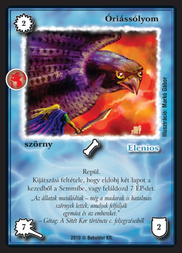 Szöveg: Repül. Kijátszási feltétele, hogy eldobj két lapot a kezedb?l a Semmibe, vagy feláldozd 7 ÉP-det.