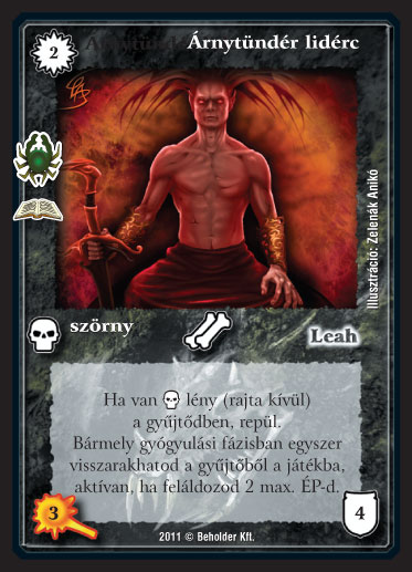 Szöveg: Ha van _él?holt lény (rajta kívül) a gy?jt?dben, repül. Bármely gyógyulási fázisban egyszer visszarakhatod a gy?jt?b?l a játékba, aktívan, ha feláldozod 2 max. ÉP-d.