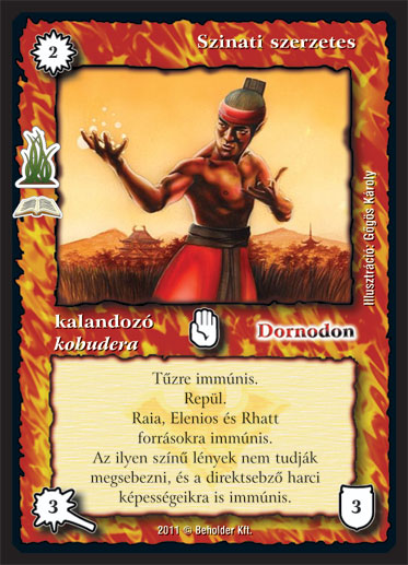 Szöveg: T?zre immúnis. Repül. Raia, Elenios és Rhatt forrásokra immúnis. Az ilyen szín? lények nem tudják megsebezni, és a direktsebz? harci képességeikra is immúnis.