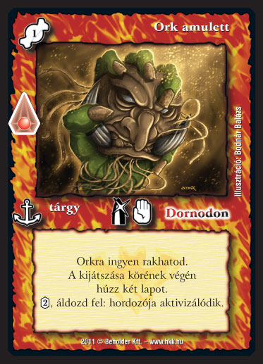 Szöveg: Orkra ingyen rakhatod. A kijátszása körének végén húzz két lapot. [2], áldozd fel: hordozója aktivizálódik.