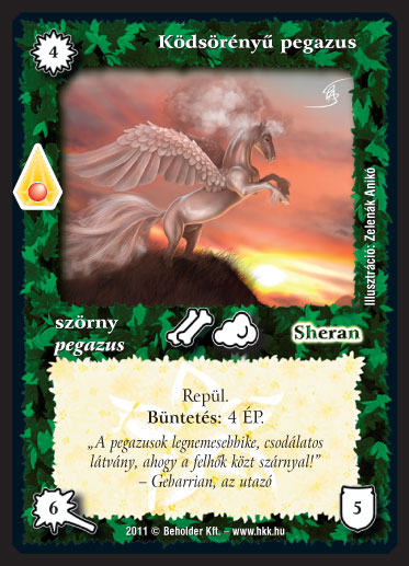 Szinesítő szöveg: "A pegazusok legnemesebbike, csodálatos látvány, ahogy a felhők közt szárnyal!" - Gebarrian, az utazó