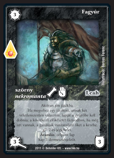 Szöveg: Aktívan jön játékba. Ha megsebez egy játékost, annak két véletlenszerűen választott lapját a gyűjtőbe kell dobnia; a következő előkészítő fázisodban, ha még ott vannak, a gazdájuk visszaveheti őket a kezébe. _+: 2-es jéglehelet. Áramlás: célpont lap kap 3 dermesztésjelzőt.