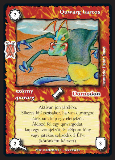 | Quwarg harcos (új): A szövege helyesen \"ha van quwargod játékban rajta kívül\". Vagyis csak akkor kap életet, ha rajta kívül van már quwargom játékban. |