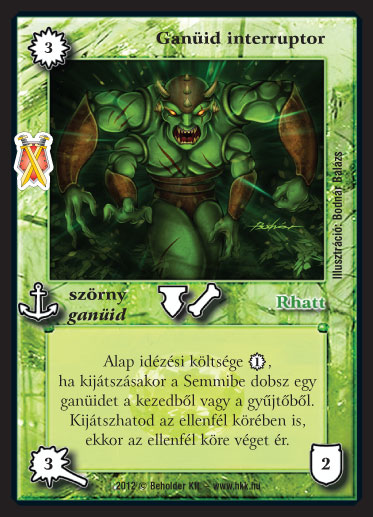 Szöveg: Alap idézési költsége 1_VP, ha kijátszásakor a Semmibe dobsz egy ganüidet a kezedből vagy a gyűjtőből. Kijátszhatod az ellenfél körében is, ekkor az ellenfél köre véget ér.