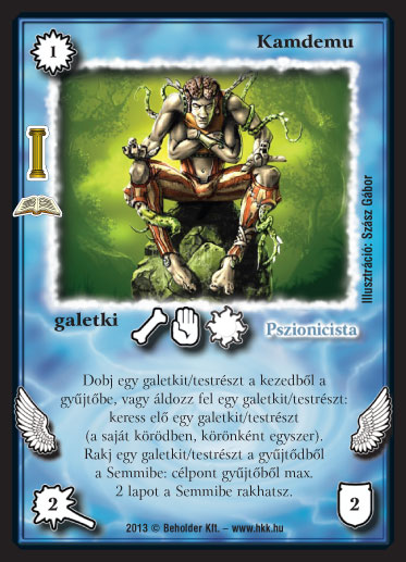 Szöveg: _Repül Dobj egy galetkit/testrészt a kezedből a gyűjtőbe, vagy áldozz fel egy galetkit/testrészt: keress elő egy galetkit/testrészt (a saját körödben, körönként egyszer). Rakj egy galetkit/testrészt a gyűjtődből a Semmibe: célpont gyűjtőből max. 2 lapot a Semmibe rakhatsz.