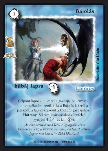 Szöveg: Célpont lapnak te leszel a gazdája, ha lény volt, a tartalékodba kerül. (Ha a Bájolás kikerül a játékból, a lap visszakerül a korábbi gazdájához.) Hátrány: Sikeres kijátszásakor ellenfeled gyógyul 4 ÉP-t és kap 1_VP-t.
