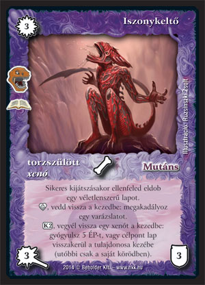 Szöveg: Sikeres kijátszásakor ellenfeled eldob egy véletlenszerű lapot. _etnikum, vedd vissza a kezedbe: megakadályoz egy varázslatot. (K2), vegyél vissza egy xenót a kezedbe: gyógyulsz 5 ÉP-t, vagy célpont lap visszakerül a tulajdonosa kezébe (utóbbi csak a saját körödben).