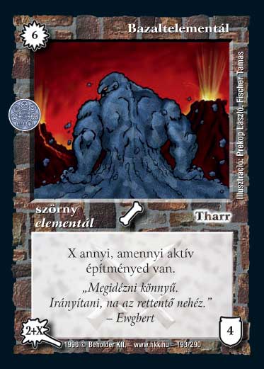 Hatalom Kártyái kártyalap - Bazaltelementál |  | A lap felújított változata (ahogy egy késõbbi kiegészítõben megjelent)