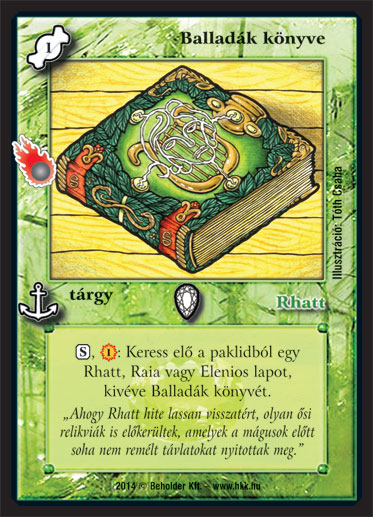 Szöveg: (S), (1): Keress elő a paklidból egy Rhatt, Raia vagy Elenios lapot, kivéve Balladák könyvét.