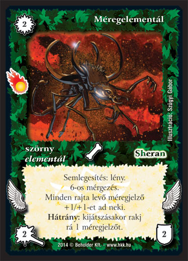 Szöveg: Semlegesítés: lény. 6-os mérgezés. Minden rajta levő méregjelző +1/+1-et ad neki. Hátrány: kijátszásakor rakj rá 1 méregjelzőt.