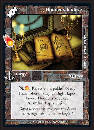 Szöveg: (S), (1): Keress elő a paklidból egy Tharr, Sheran vagy Fairlight lapot, kivéve Huddens kódexét. Áramlás: kapsz 1 _*-t.