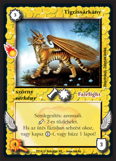 Szöveg: Semlegesítés: azonnali. _+: 2-es tűzlehelet. Ha az ütés fázisban sebzést okoz, vagy kapsz 1_VP-t, vagy húzz 1 lapot!