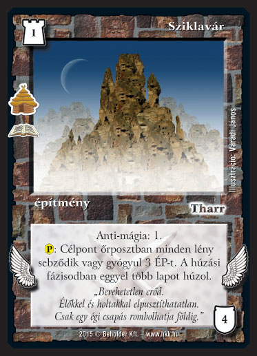 | Húzok plusz egy lapot a Sziklavárra (új), ha nem passzivizáltam. "A húzás fázisodban eggyel több lapot húzol" valójában egy külön képesség, mindig működik, függetlenül attól, hogy passzivizáltam-e. Talán szerencsésebb lett volna külön sorba tördelni. |
