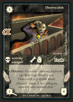Szöveg: Hátrány: Ha valaki sikeresen kijátszik egy Raia vagy Rhatt lapot, Doorwalth a gyűjtőbe kerül.