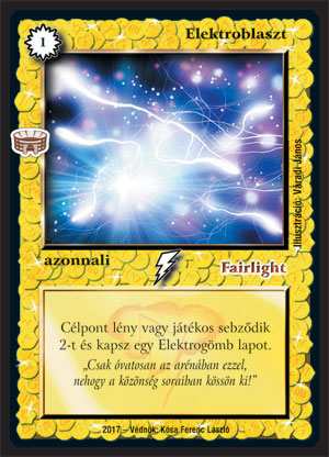 Szöveg: Célpont lény vagy játékos sebződik 2-t és kapsz egy Elektrogömb lapot.