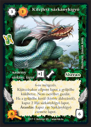 Szöveg: 6-os mérgezés. Kijátszásakor célpont lapot a gyűjtőbe küldhetsz. Nem cserélhet gazdát. Ha a gyűjtőbe kerül (kivéve áldozástól), kapsz 2 Ifjú sárkánykígyó lapot. Áramlás: kapsz egy Sárkánykígyó csemete lapot.