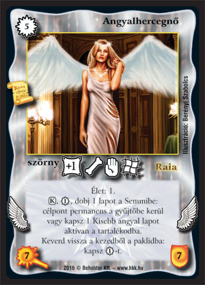 Szöveg: [[1]] Élet: 1. (K), 1_VP, dobj 1 lapot a Semmibe: célpont permanens a gyűjtőbe kerül vagy kapsz 1 Kisebb angyal lapot aktívan a tartalékodba. Keverd vissza a kezedből a paklidba: kapsz 1_VP-t.