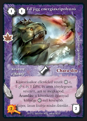 Szöveg: Kijátszásakor ellenfeled veszít 1_VP-t, 1 _*-t és 1 ÉP-t és amit ténylegesen vesztett, azt te megkapod. Áramlás: a következő éjfattyad költsége 3_VP-vel kevesebb.