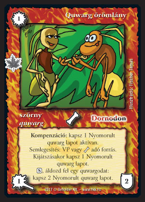 Szöveg: Kompenzáció: kapsz 1 Nyomorult quwarg lapot aktívan. Semlegesítés: VP vagy _* adó forrás. Kijátszásakor kapsz 1 Nyomorult quwarg lapot. (S), áldozd fel egy quwargodat: kapsz 2 Nyomorult quwarg lapot.