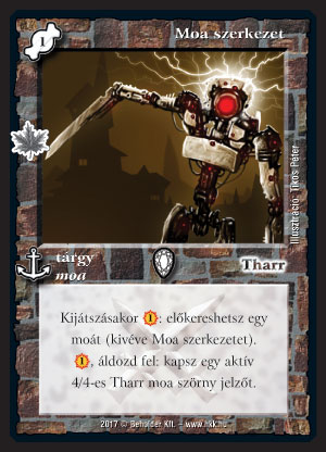 Szöveg: Kijátszásakor (1): előkereshetsz egy moát (kivéve Moa szerkezetet). (1), áldozd fel: kapsz egy aktív 4/4-es Tharr moa szörny jelzőt.