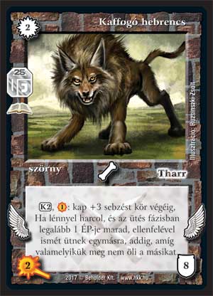 Szöveg: (K2), (1): kap +3 sebzést kör végéig, Ha lénnyel harcol, és az ütés fázisban legalább 1 ÉP-je marad, ellenfelével ismét ütnek egymásra, addig, amíg valamelyikük meg nem öli a másikat.