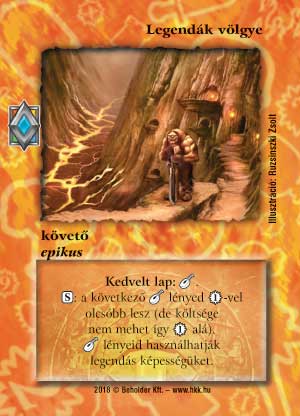 Szöveg: Kedvelt lap: _legendás. (S): a következő _legendás lényed 1_VP-vel olcsóbb lesz (de költsége nem mehet így 1_VP alá). _legendás lényeid használhatják legendás képességüket.