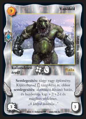 Szöveg: Semlegesítés: tárgy vagy építmény. Kijátszhatod _KF tárgyként is, ekkor semlegesítés: aktiválást kívánó hatás, és hordozója kap +2/+2-t és mágikus védelmet.