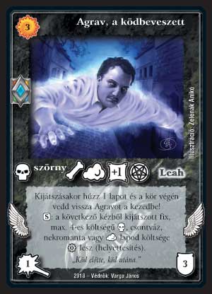 Szöveg: Kijátszásakor húzz 1 lapot és a kör végén vedd vissza Agravot a kezedbe! (S): a következő kézből kijátszott fix, max. 4-es költségű _élőholt, csontváz, nekromanta vagy _köd lapod költsége 0_VP lesz (helyettesítés).