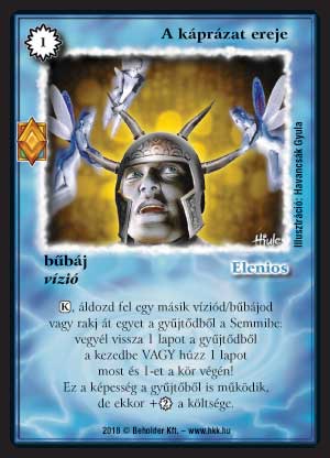 Szöveg: (K), áldozd fel egy másik víziód/bűbájod vagy rakj át egyet a gyűjtődből a Semmibe: vegyél vissza 1 lapot a gyűjtődből a kezedbe VAGY húzz 1 lapot most és 1-et a kör végén! Ez a képesség a gyűjtőből is működik, de ekkor +2_VP a költsége.